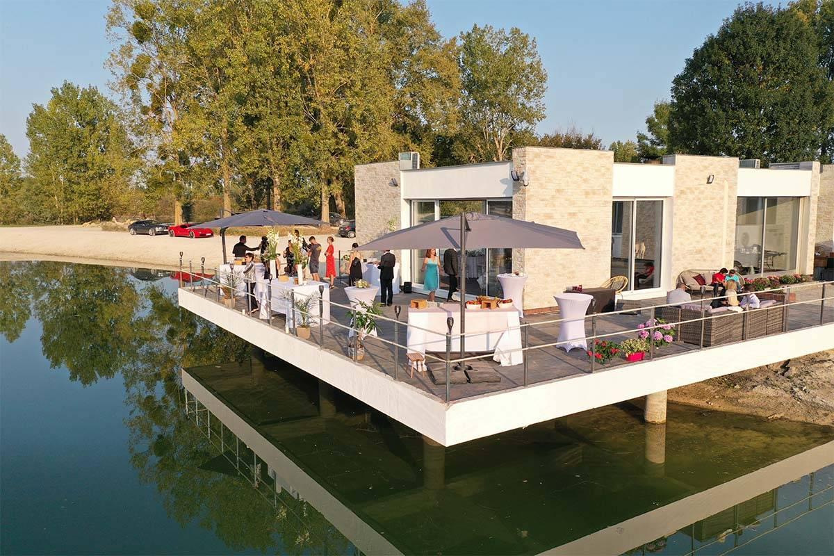 Le club house est équipé d'une cuisine professionnelle, et d'un grand auvent avec vue panoramique sur les étangs.